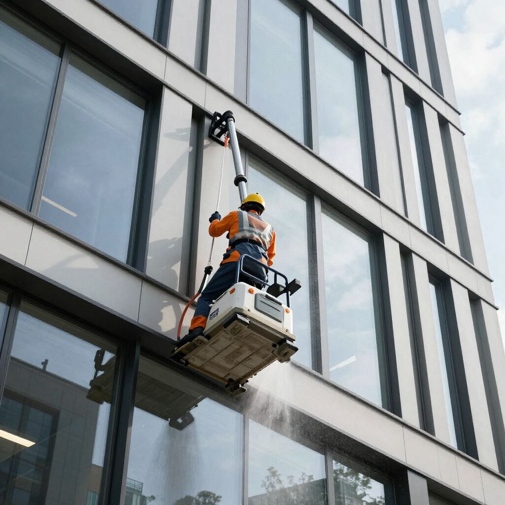 Veilige en streeploze reiniging van ramen bij een kantoorpand, uitgevoerd door ons ervaren team.